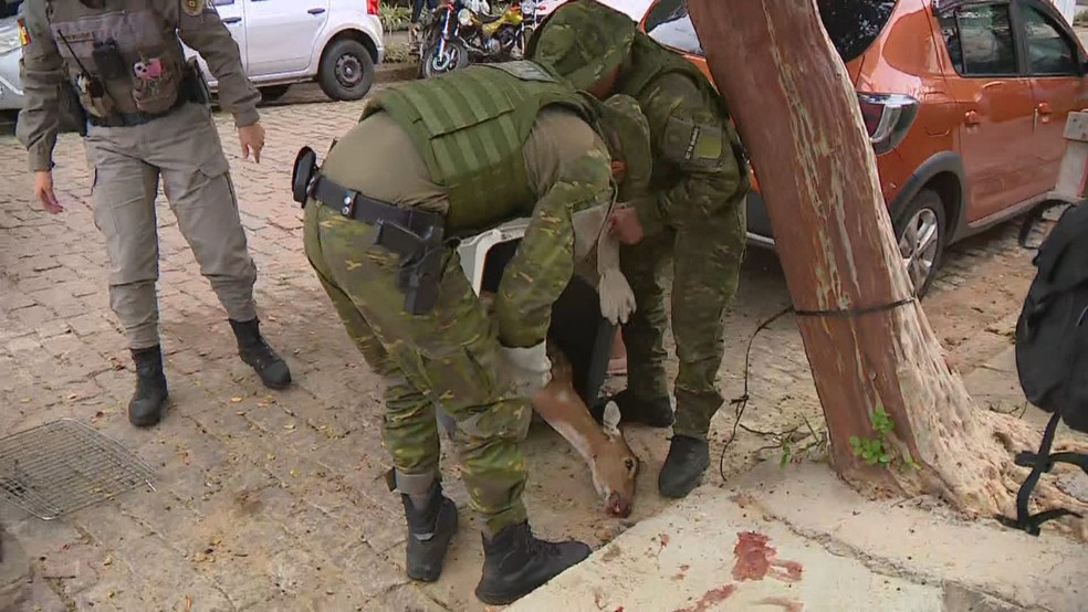 Um cervo ferido foi encontrado na rua por moradores do bairro Menino Deus, em Porto Alegre, na manhã desta quarta-feira (15).