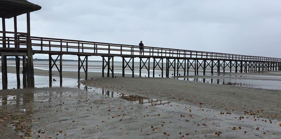 A margem da Lagoa dos Patos recuou aproximadamente 200 metros na praia do Laranjal, em Pelotas, na Região Sul.