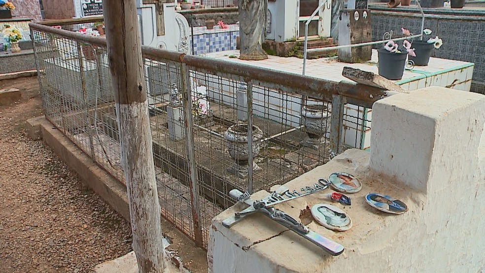 O agricultor Marco Antonio da Silveira estima que o prejuízo para refazer as placas e fotos possa chegar a cerca de R$ 2 mil. "Levaram as fotos do pai e da mãe."